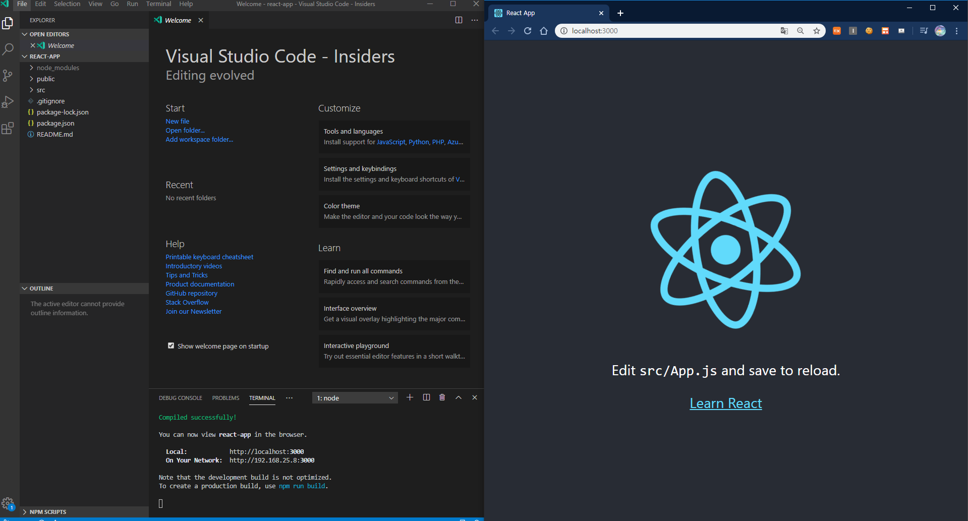 cmd를 통해 바탕화면에 만들어 놓은 react-app 디렉토리에서