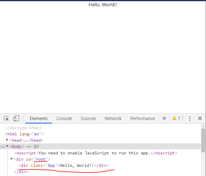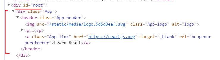 코드를 확인하면 index.html에는 적혀있지 않지만 리액트를 통해 만든 태그들이 삽입된 것을 확인할 수 있다.