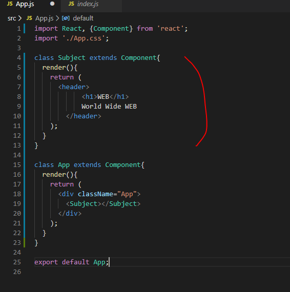 Subject클래스를 만든 후에, App클래스의 <div>안에 <Subject></Subject>를 넣으면?