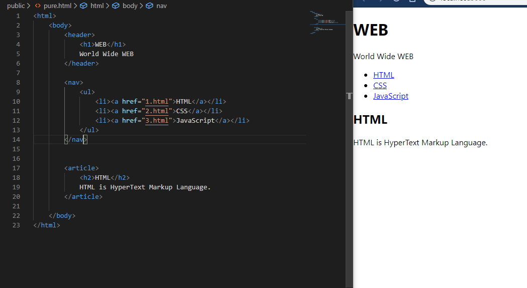 public폴더에 pure.html이라는 파일을 새로 만들었다.