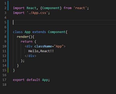 Component라는 클래스를 상속받아 새로운 클래스 App를 만든다.