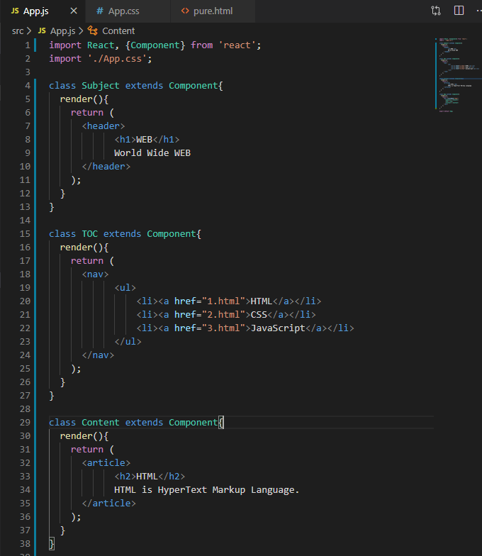 나머지 pure.html에 있던 태그들도 마저 컴포넌트들로 바꾸어 만들어주자.
