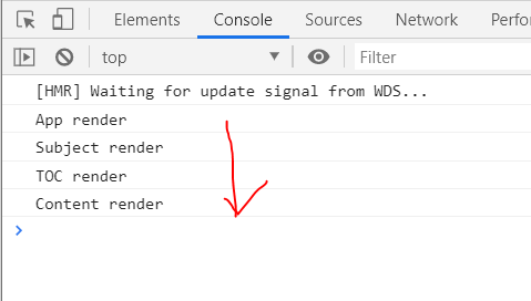 App 컴포넌트의 render가 호출될 때 뿐만 아니라, 하위 컴포넌트의 render 함수도 순서대로 호출된다는 것을 볼 수 있다.