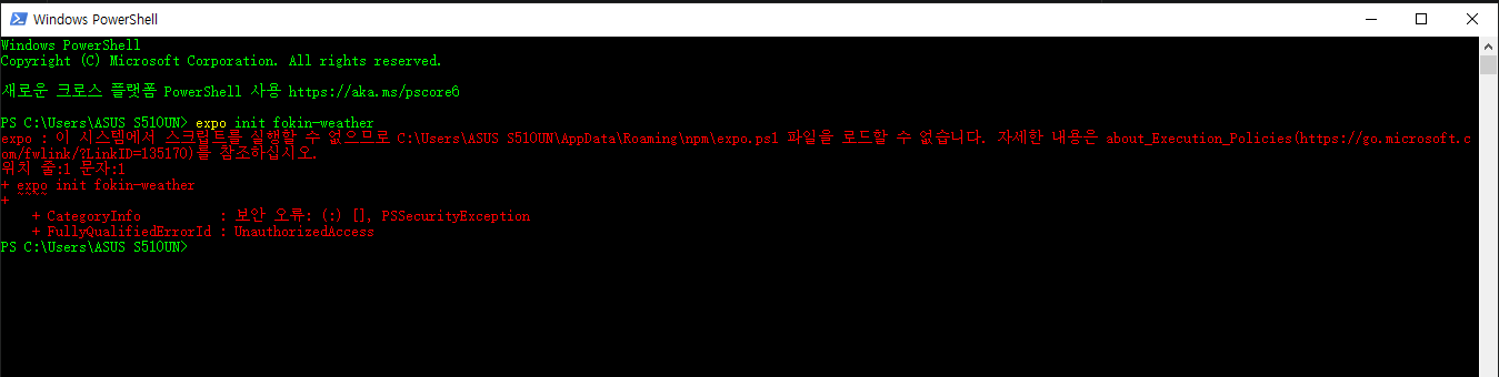 powershell은 일반적으로 관리자권한이 없어서 저런 에러가 뜬 것이라고 한다.