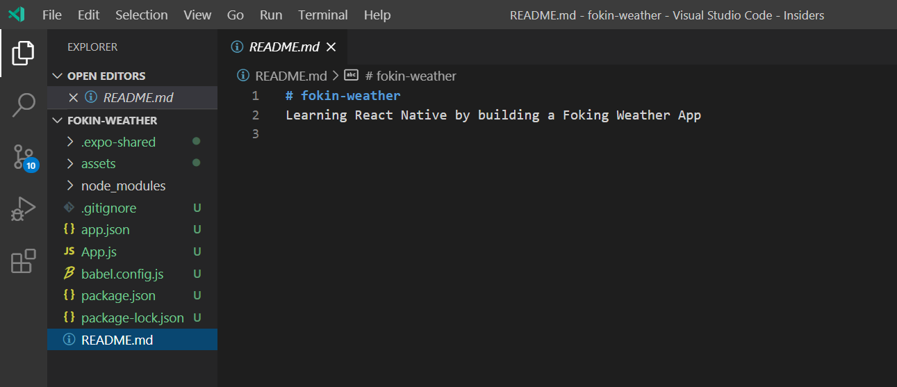 Visual Studio Code에서 폴더를 열어 확인해보니, git에서 만들어준 README.md가 받아와졌다.